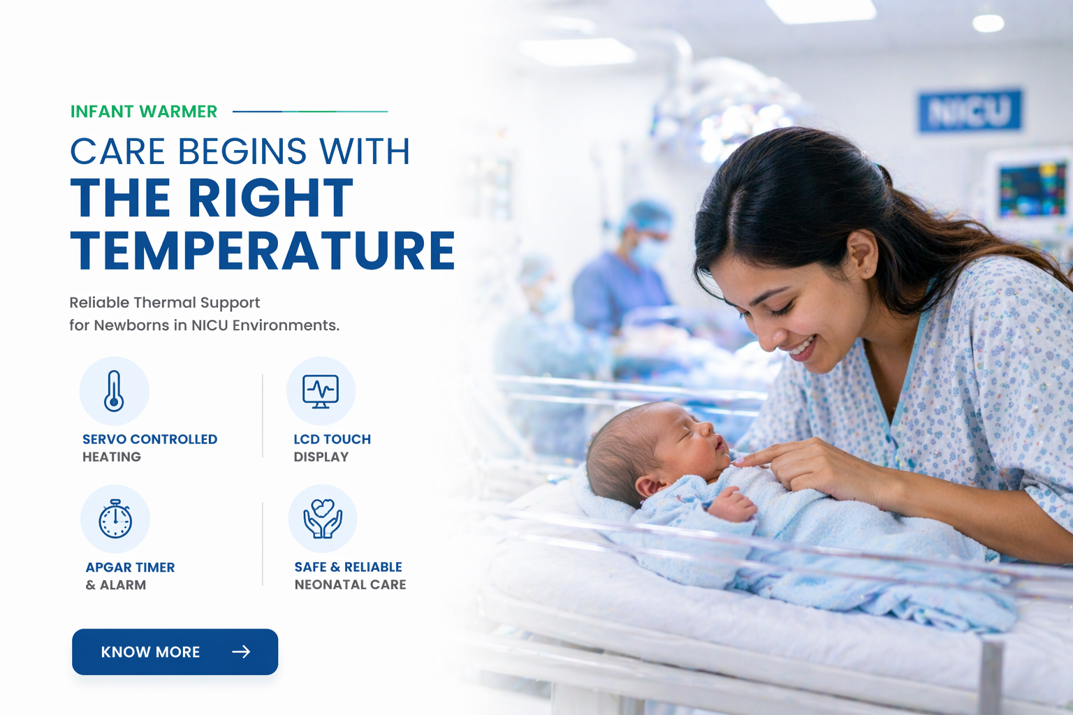MEDILAP NICU range delivers safe, dependable, and clinically proven solutions including radiant warmers, phototherapy units, and neonatal care systems—engineered to protect and nurture newborn lives.